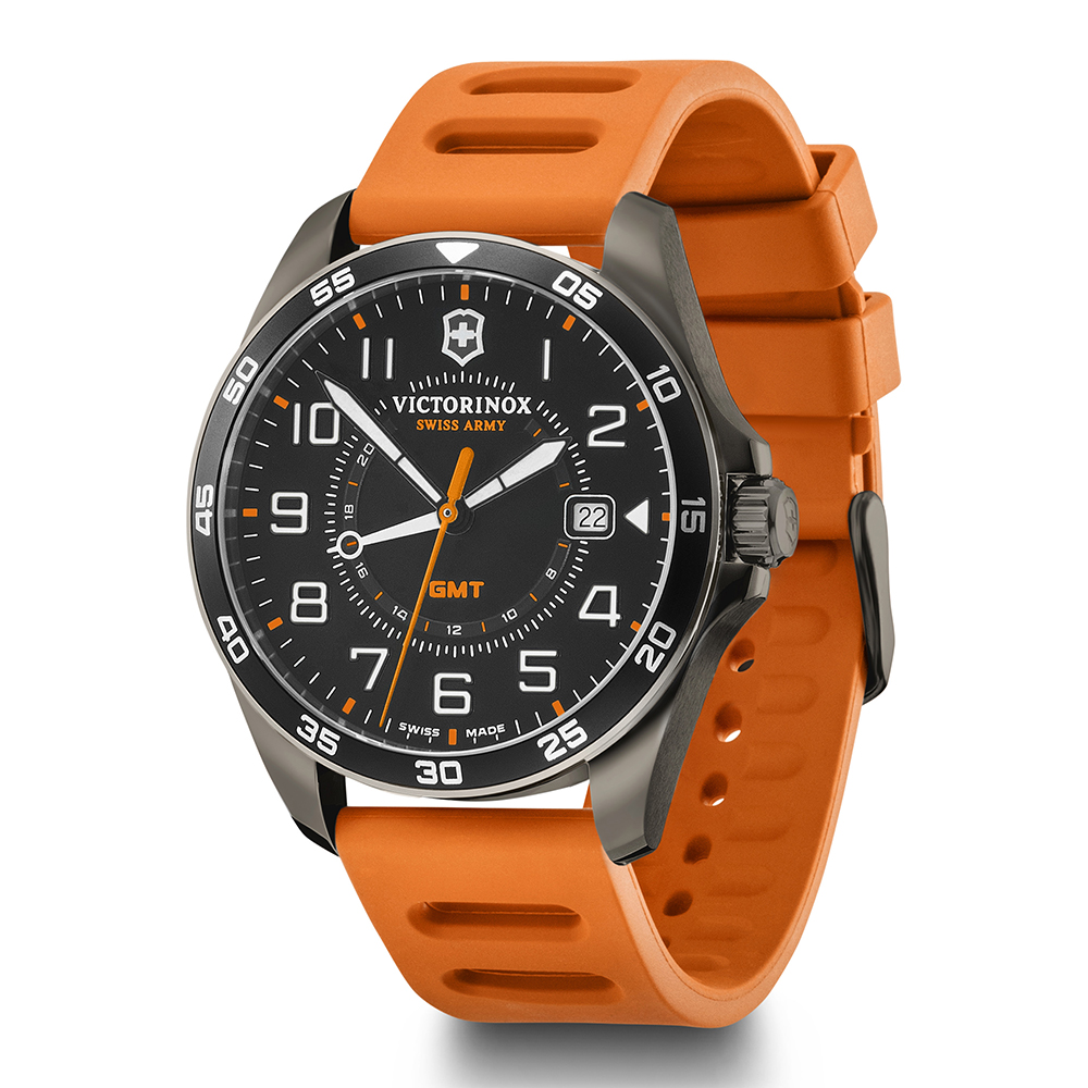 Com a útil função GMT, o FieldForce GMT acompanha dois fusos horários, de modo que você pode receber chamadas de trabalho na hora certa e falar com a família sem problemas sempre que estiver viajando pelo mundo. O icônico ponteiro vermelho dos segundos com o contrapeso inspirado no canivete do exército suíço e o símbolo cross and shield vermelho no mostrador refletem o DNA suíço em uma declaração forte e direcional. É o equilíbrio perfeito entre elegância, qualidade e facilidade de leitura, para quem viaja a negócios com frequência e sabe bem que o tempo voa.